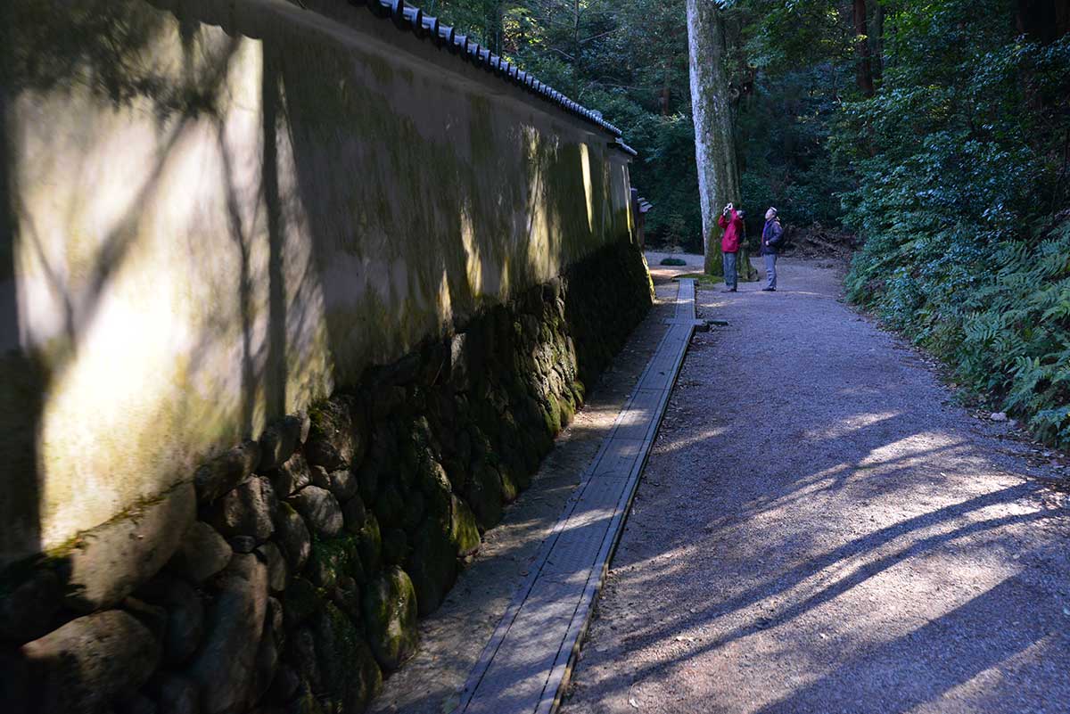 古い神社の、古い土塀には、古い神々が潜んでいそうな神秘的な雰囲気が(石上神宮)