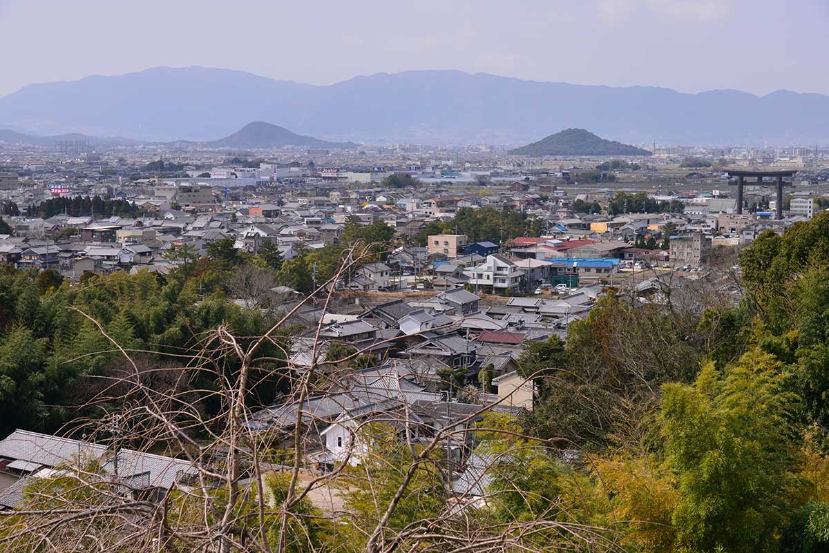 狭井神社から大神神社へ行く途中の大美和の杜。大和三山が一望できる